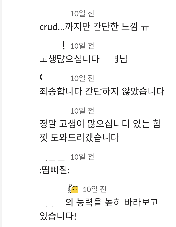 하지만 신입이고, 아직 코드 숙련도가 올라오지 않아 저렇게 많은 comment 를 받는게 당연하다고 생각이 들었습니다.