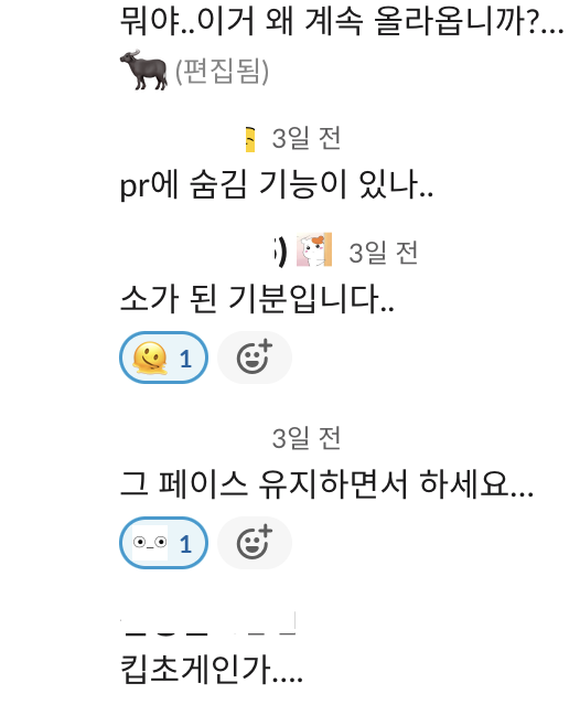 요즘 pr comment 공격을 많이 받고 이것을 모두 쳐내고 있습니다.