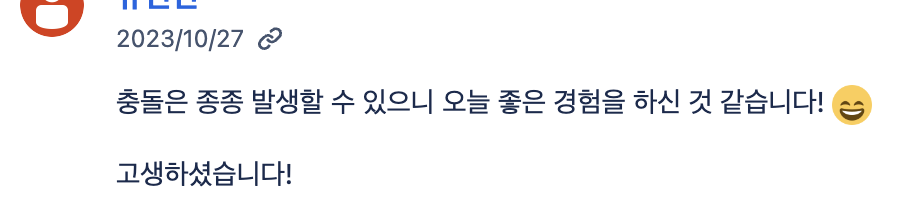덕분에 충돌을 무사히 해결하였습니다😭