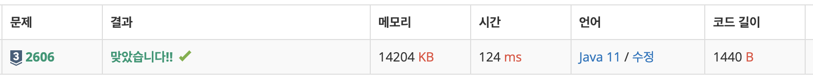 1로 인해서 전염된 컴퓨터의 개수를 구하는 문제이므로 visited 배열에서 index = 1을 제외한 true 의 개수를 출력하면된다.