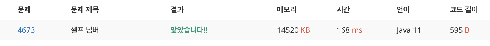 10000보다 작거나 같은 셀프 넘버를 한 줄에 하나씩 출력하는 프로그램을 작성하시오.